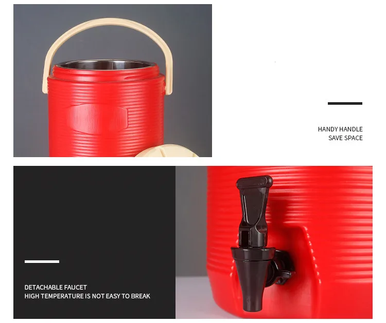 Бочонок для сохранения тепла молочного чая используется для выпуска горячего молочного чая или ледяного молочного чая. Бочка для сохранения тепла может согреться, а экзотермический чай с молоком предназначен для нужд некоторых клиентов. Когда нужно добавить лед, можно добавить лед в Разлитый чай с молоком. Ведро для сохранения тепла также можно положить в чай с ледяным молоком. Когда существует большая потребность в человеческом потоке, его можно вылить прямо из ведра для сохранения тепла в чашку. Клиенты, которым нужно больше льда, также могут добавить к ним лед. Как правило, лед не упакован в изолированные бочки. Лед кладут в морозилку. Ведра используются для хранения большего количества напитков, минеральной воды или кипяченой воды (используется для смешивания сока)